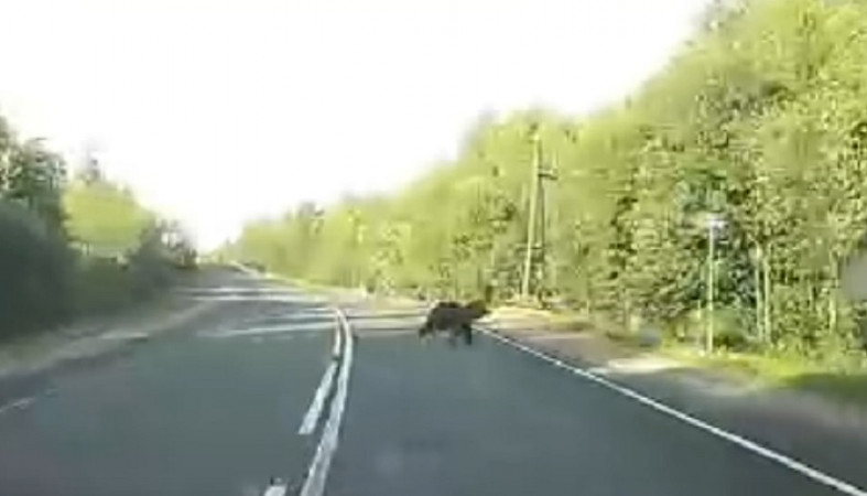 В Кемском районе автомобилист встретил медведя на одной из дорог. Видео опубликовало сообщество «Подслушано Кемь».