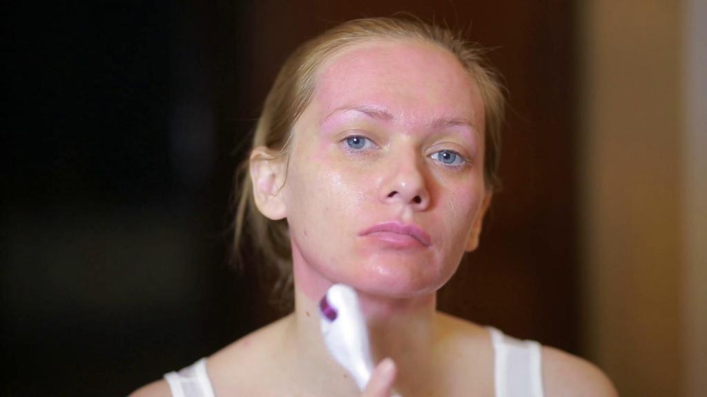 - Нанести на участок кожи выбранный препарат и как следует пройтись по нему игольчатым валиком. Каждое движение необходимо повторять минимум 10 раз. Затем то же самое проделать со следующим участком.