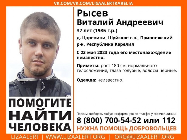 В Карелии пропал 37-летний Виталий Рысев. Об этом сообщает паблик поискового отряда «ЛизаАлерт».