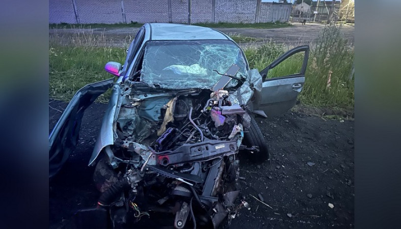 За рулем иномарки был 22-летний водитель, он не справился с управлением, машина опрокинулась. Судя по фото, она практически полностью разрушена.