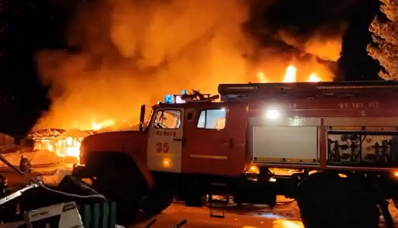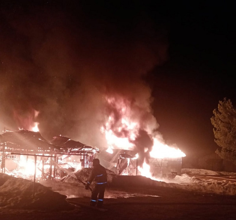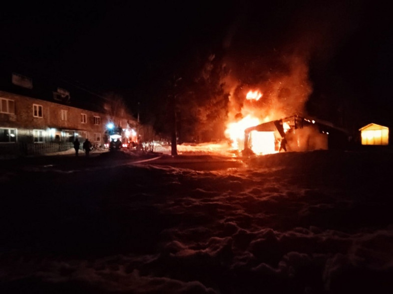Сигнал о возгорании в хозяйственной постройке поступил на пульт дежурного в 00:14. На место выехали местные пожарные, а также их коллеги из Олонца — всего восемь человек и три единицы техники. Выяснилось, что горит многосекционный сарай.