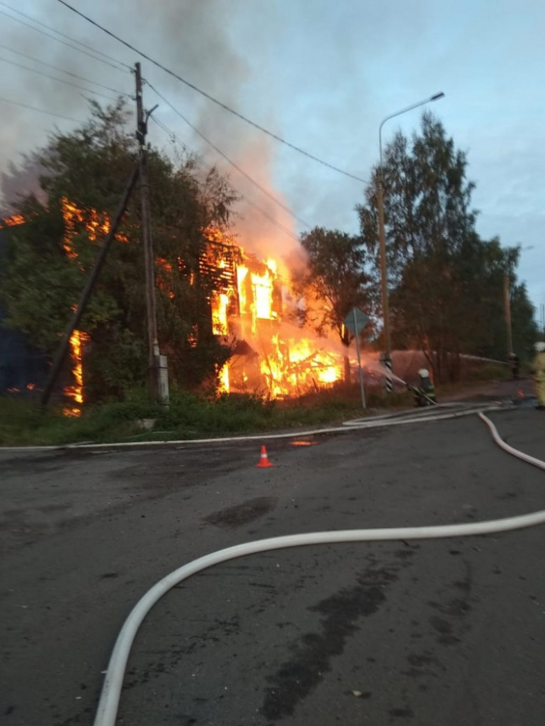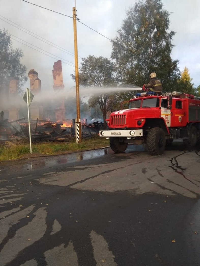 Сигнал о возгорании поступил на пульт дежурного в 4:49. На место выехали три единицы техники и 13 человек личного состава пожарных частей Лоухи и Чупы. Выяснилось, что горит неэксплуатируемое здание.