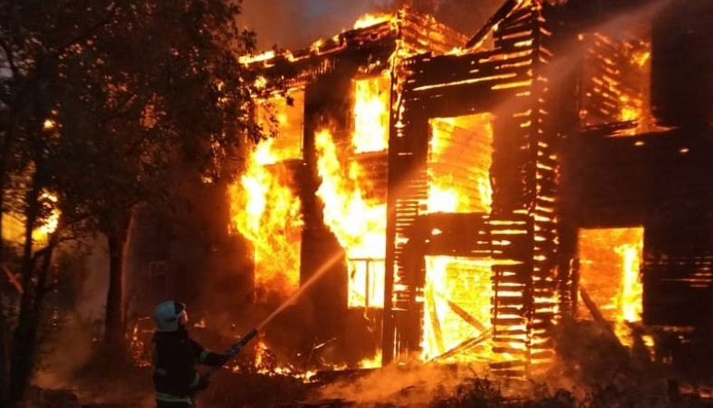В поселке Лоухи горело неэксплуатируемое здание