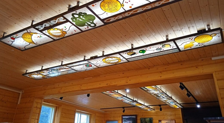Новыми красками заиграет Куркиекский краеведческий центр Лахденпохского района. Благодаря нацпроекту здесь установлены оригинальные витражные панно в технике «тиффани». Основой для разработки красочного дизайна модульных композиций послужили артефакты из археологический коллекций музея. С помощью современного осветительного оборудования, разработанного в мастерской «Русский витраж», в музее будут проходить интерактивные игры и квесты для детей и молодежи. Фото: gov.karelia.ru.