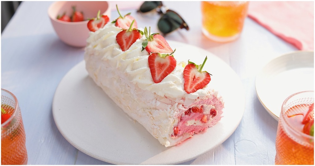 Ингредиенты для рулета из безе с клубникой: