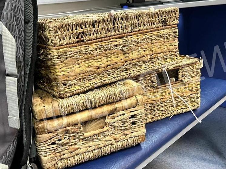 Как сообщили «RuNews» в пресс-службе ФТС России, животных обнаружила на «зеленом» коридоре служебная собака таможенников породы бельгийская овчарка. Она обратила внимание на красный чемодан, где в ткани были сделаны отверстия для воздуха.
