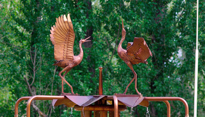 Фонтан перед зданием бывшего Дома культуры ОТЗ был открыт еще в советское время, однако уже 80-е годы обветшал и пришел в упадок. В 1997-м его реконструировали и украсили скульптурой «Журавли» Григория Салтупа. Другое название фонтана — «Любовь».