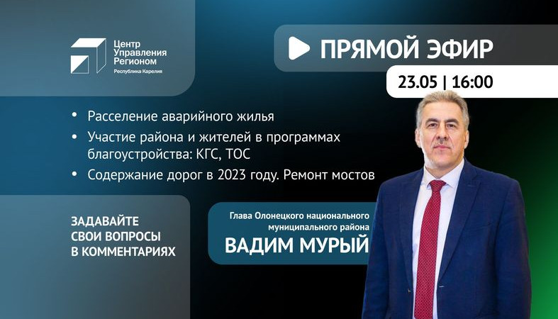 Вопросы можно задать заранее: в комментариях под анонсом прямого эфира в паблике «ЦУР Республики Карелия» и официальной группе района во «ВКонтакте».