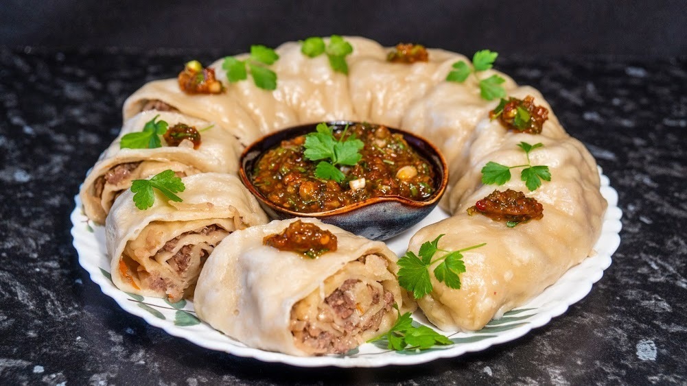 Многие хозяйки отказываются от лепки мант и пельменей из-за трудоемкости процесса и лишних хлопот с расстойкой теста. Гораздо быстрее и проще будет поступить иначе: обернуть тонкое тесто с начинкой сразу вокруг скалки и уже через короткое время получить целую кастрюлю паровых рулетов с сочной мясной начинкой.