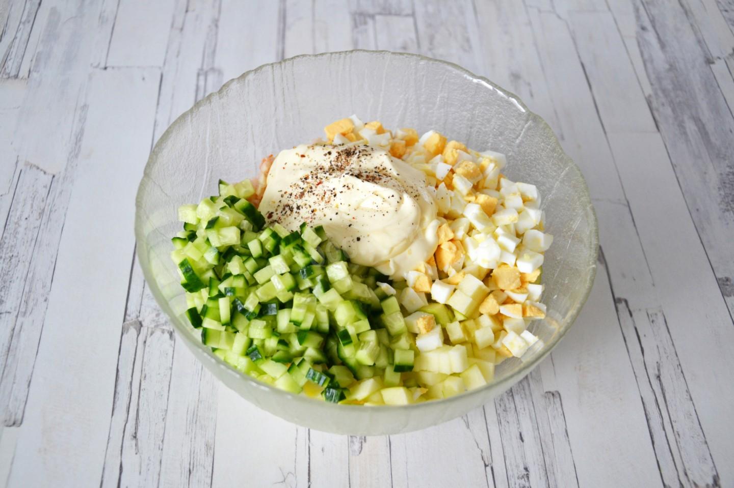 Если вы положите яиц не 2, а 3, например, то на вкусовых качествах салата это не отразится, а в объеме он прибавит).
