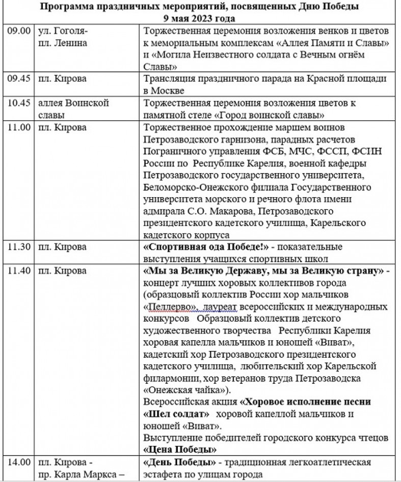 В Петрозаводске 9 мая отметят День Победы. Программу мероприятий публикует мэрия карельской столицы.