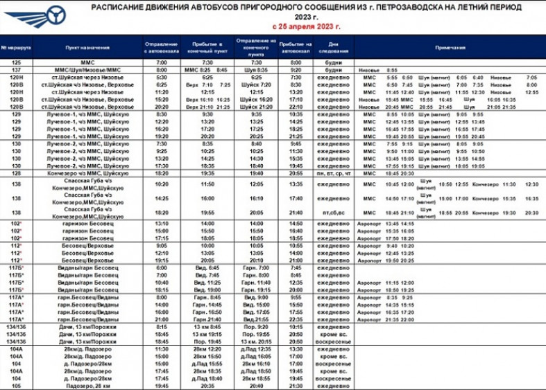 С 25 апреля вступает в силу летнее расписание пригородных автобусов из Петрозаводска. Об этом сообщает паблик ГУП РК «Карелавтотранс».