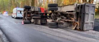 Водитель жив, но получил травмы На дороге, ведущей в гарнизон Бесовец, самосвал Scania упал
