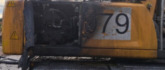Огонь повредил моторный отсек О пожаре в перевалочном погрузчике Liebherr LH35 спасателям сообщили 12