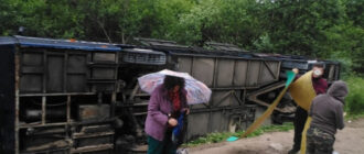 На месте аварии работают экстренные службы Автобус, в котором находились 40 человек, попал в