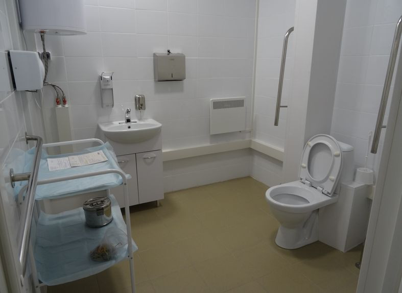Наверное, самое удивительное в сельской амбулатории — это три просторных туалета. Они расположены в детском и взрослом отделениях, а также в пункте скорой помощи. Вместо канализации — септик, который регулярно обслуживается, так что в туалетах нет неприятных запахов.