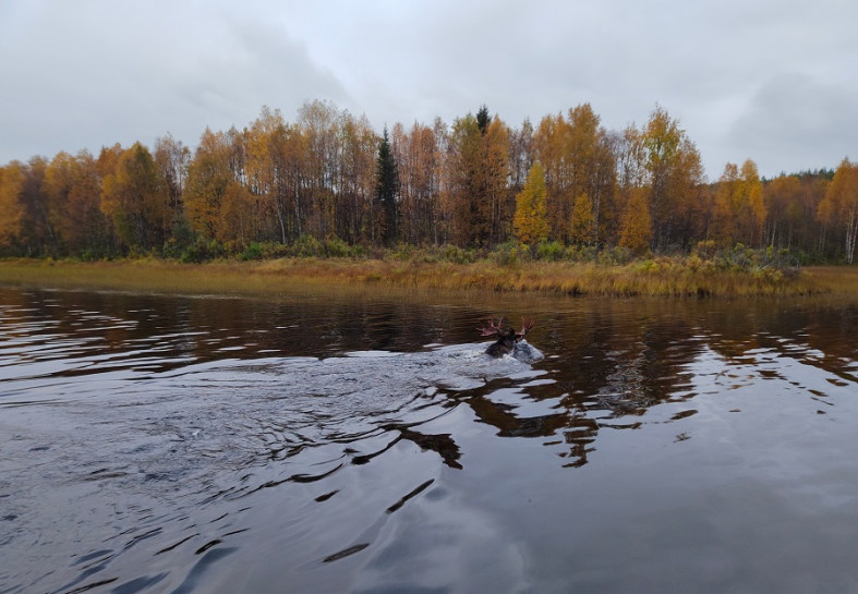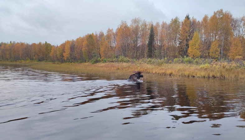 В национальном парке «Паанаярви» сохатый дал мастер-класс по плаванию