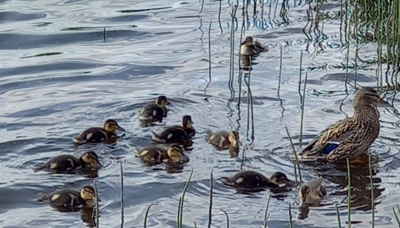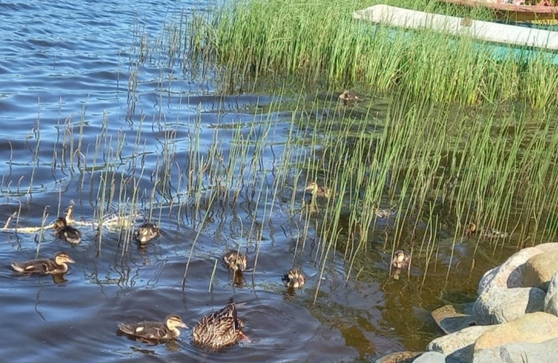 Часто приводят своих детей, а мы их подкармливаем. Утиное семейство даже спать укладывается у нас на берегу. Бывали случаи, когда мы осенью копали картошку, утки гуляли рядом, червяков и мелкую картошку клевали. Помощники!