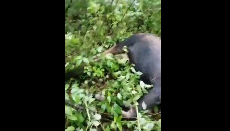 Установить причину гибели лося теперь предстоит специалистам. // фото скриншот видео очевидцев/ ИА «Республика»