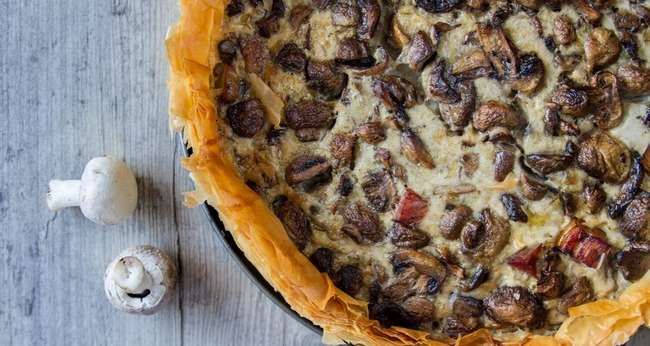 Сочетание мяса, грибов, сыра и стручковой фасоли в слоеном пироге понравится вам, без сомнений. А как красиво он выглядит — от одного вида выделяется слюна!