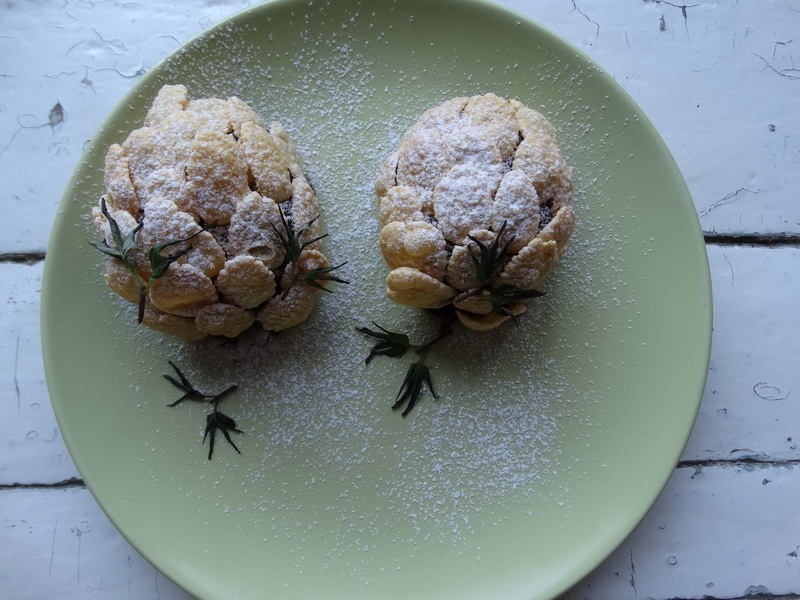 Притрушиваем шишки сахарной пудрой. Это не только прибавит реалистичности нашей шишке, но и прикроет видимые недостатки.