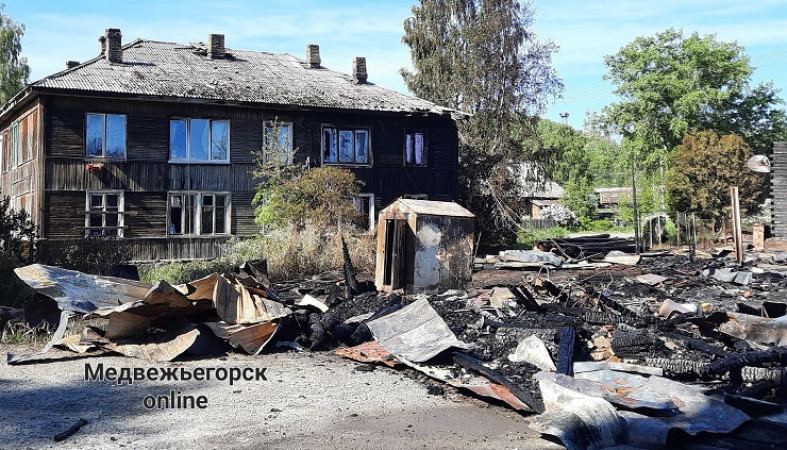 Напомним, пожар случился вечером 20 июня, загорелась хозяйственная постройка на улице Артемьева, огонь перекинулся на жилой дом. // фото: «Медвежьегорск Online»/ВКонтакте
