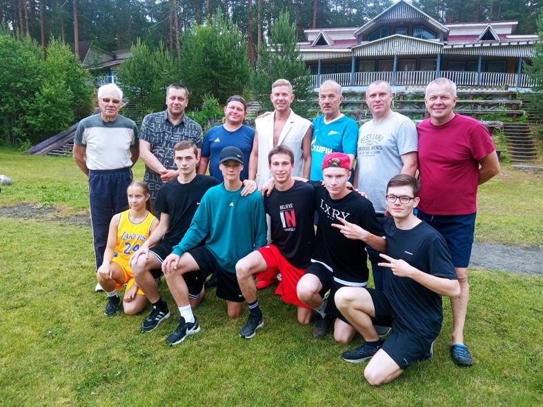 Митя Фомин принял участие в разминке пред тренировкой спортсменов, а затем побеседовал со старейшим спортсменом Пряжи Валерием Кононовым.