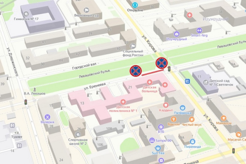 Также с 18 апреля будет запрещена остановка всех видов транспорта на участке улицы Еремеева рядом с городской детской больницей, а также на участке дороги Городского вала в районе дома №38 по улице Еремеева.