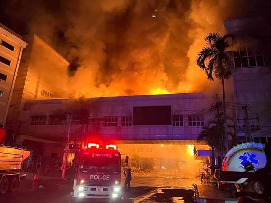 Представитель правительства Таиланда из соседнего города Араньяпратет, который граничит с Пойпетом, сказал, что огонь перекинулся на 17-этажное здание неподалеку.