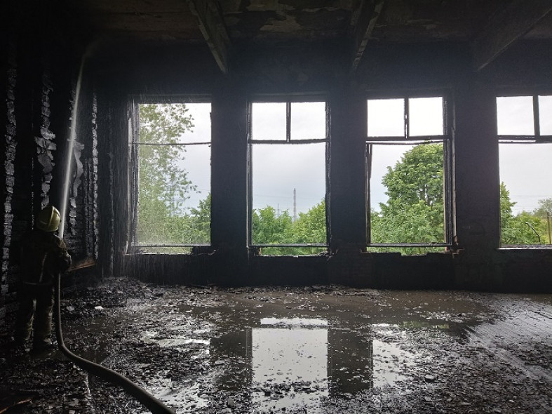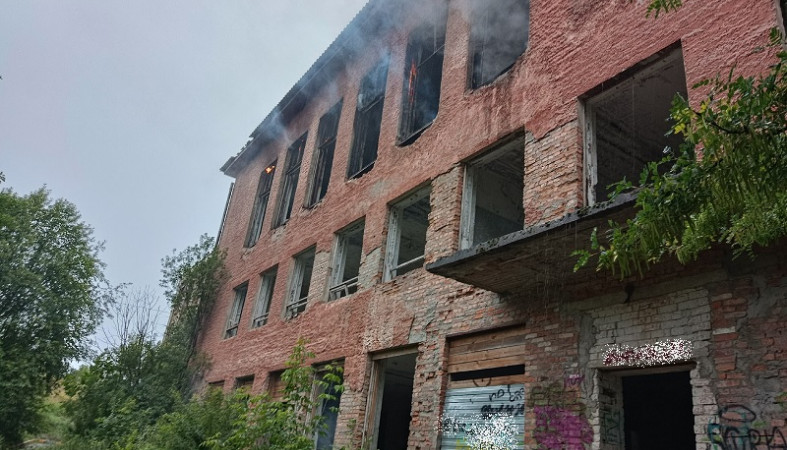 В Кондопоге 12 июля загорелось здание бывшего училища. Огонь и дым виднелись на верхних этажах кирпичного строения.