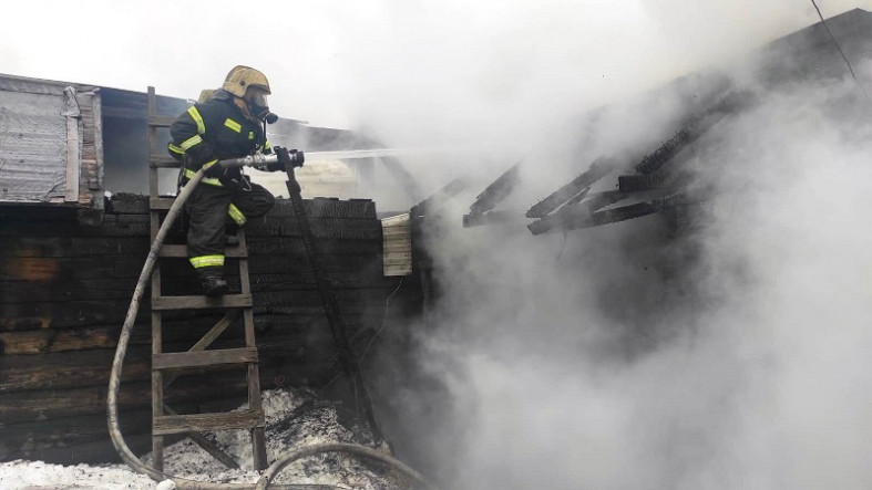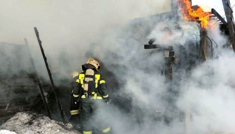 Хозяйственная постройка вспыхнула в Костомукше
