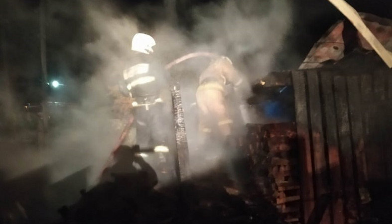 На борьбу с огнем выехали три единицы техники и 11 специалистов. Выяснилось, что горит сарай на территории частного домовладения. Пожарным потребовалось полчаса, чтобы ликвидировать возгорание. Хозпостройка была уничтожена огнем, но специалистам удалось спасти жилой дом и баню, стоявшие неподалеку.