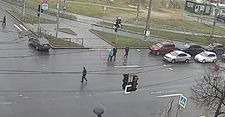 Судя по дальнейшим кадрам, женщина покинула перекресток самостоятельно. // фото скриншот видео с камеры наблюдения