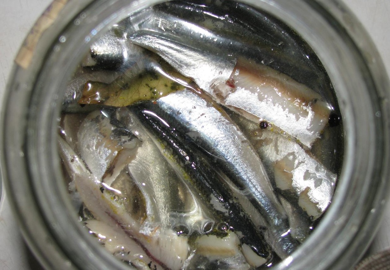 Потом отставляем кастрюлю с огня и выносим на холод, чтобы рассол быстрее остыл. Когда он будет полностью холодный, заливаем подготовленную салаку (мойву или кильку), ставим сверху небольшой груз (тарелку и на нее небольшую банку с жидкостью) и оставляем на 11 — 14 часов.