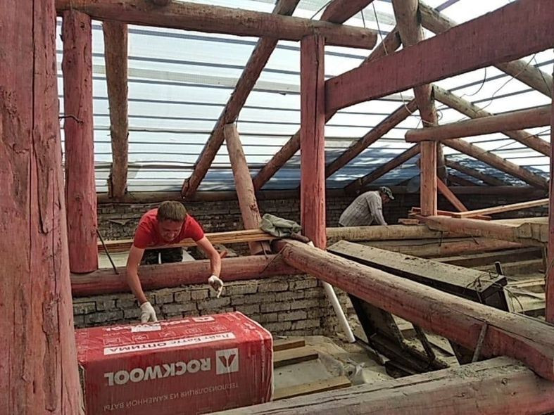 Средства предусмотрены в бюджет Карелии поправкой, которую внесли вместе с коллегой-депутатом Галиной Васильевной Алуповой. Сейчас работы в разгаре. Здесь меняют прохудившиеся чердачные перекрытия и укладывают новый утеплитель. Далее смонтируют кровельный настил из металлопрофиля,