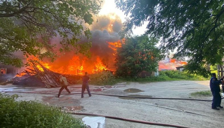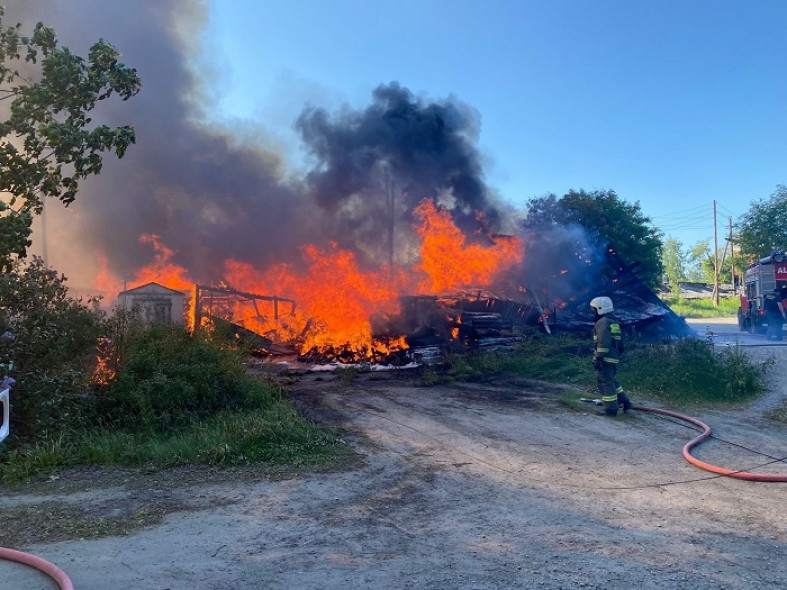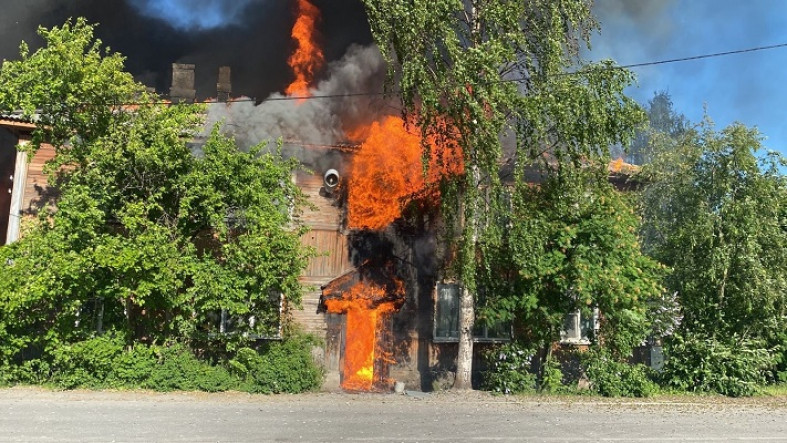 По сообщению госкомитета Карелии по ОЖ и БН, на улице Артемьева горели хозпостройки, огонь перекинулся на старые деревянные дома.