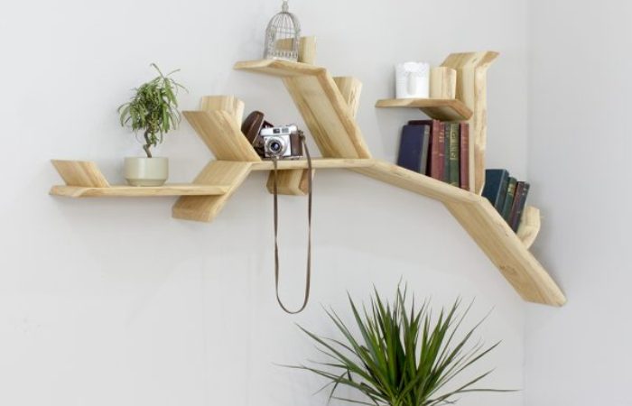 Выложить сакуру на стене своими руками можно с помощью полок, собранных в одну композицию (в виде ветки). Цветы можно нарисовать красками либо сделать их из цветной бумаги.