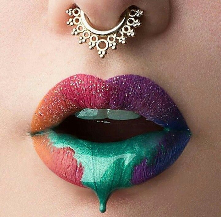 Впереди лето, а это значит, что радужный макияж губ будет в тему. Выполнить такой сложный макияж непросто, так как потребуется использование, как минимум пяти разных оттенков помад. Можно попытаться повторить изображение радуги, а можно наносить оттенки я в хаотичном порядке.