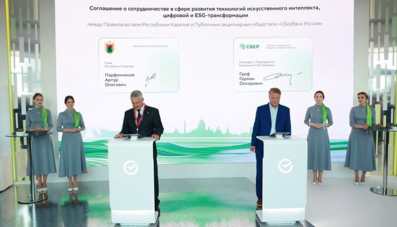 Сбер и Правительство Республики Карелия на Петербургском международном экономическом форуме заключили соглашение о сотрудничестве в сфере развития технологий искусственного интеллекта (ИИ), цифровой и ESG-трансформации.