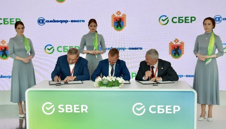 Документ о сотрудничестве подписали заместитель Председателя Правления Сбербанка Анатолий Попов, глава Республики Карелия Артур Парфенчиков и Председатель совета директоров ОАО «АМКОДОР-управляющая компания холдинга» Александр Шакутин.