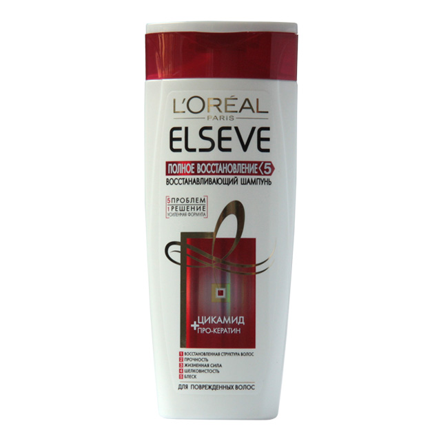Средство фирмы «Лореаль», шампунь «Эльсев полное восстановление 5», отзывы о котором в равной степени как положительные, так и отрицательные, предназначен для борьбы с пятью признаками поврежденных волос. Это: