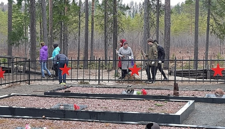 В преддверии Дня Победы ребята и взрослые из поселка Чална провели субботник в местечке Виллагора Пряжинского района, где во время Великой Отечественной войны находился один из оборонительных рубежей Петрозаводска.
