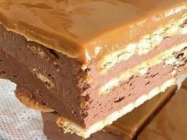 Теперь осталось только отправить готовый торт в холодильник для того чтоб остыл. А когда торт полностью остынет мы можем украсить его кремом из сливок и сгущенки, а сверху крема посыпать сахарной пудрой или какао. Желаю поэкспериментировать, с этим тортиком это возможно.