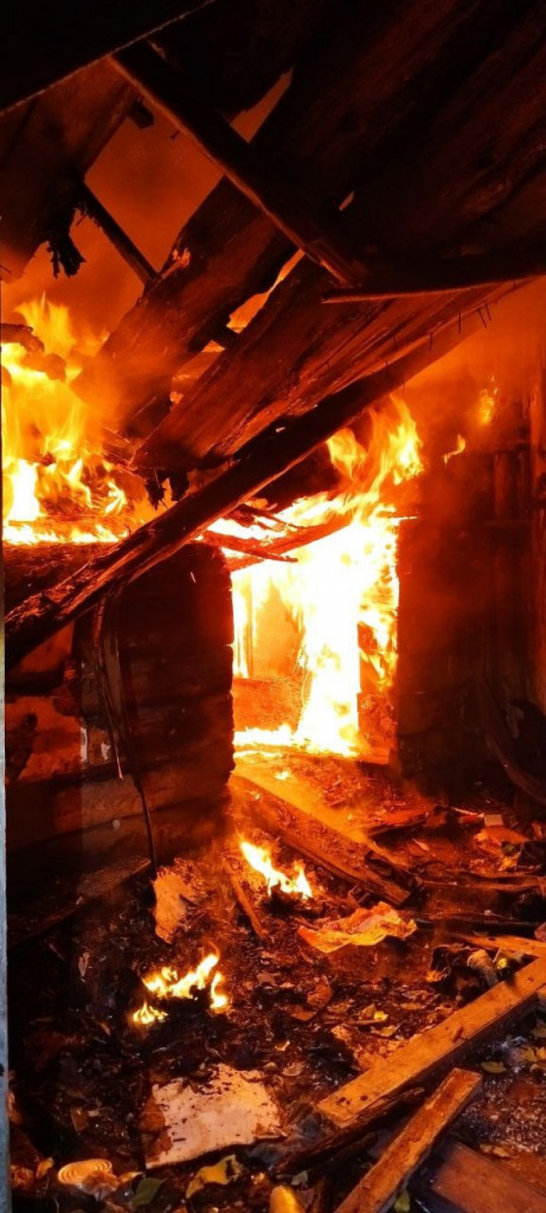 Горевшая постройка была серьезно повреждена огнем. Фото паблика пожарной охраны Кемского района