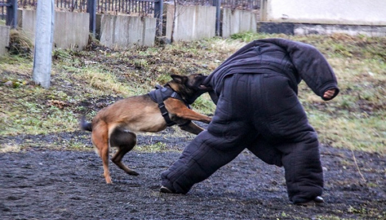 На месте работал кинолог со служебной собакой. Четвероногий полицейский взял след и привел стражей порядка в один из дворов, где был обнаружен похожий по описанию мужчина. В дальнейшем выяснилось, что именно он совершил грабеж. // Фото МВД по РК