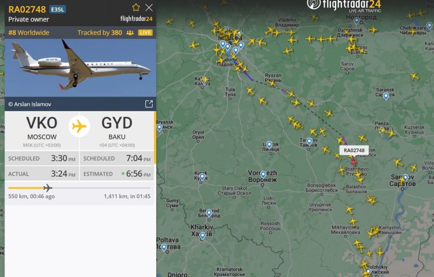 Самолет, принадлежащий руководителю ЧВК «Вагнер» Евгению Пригожину, заметили летящим по направлению в Баку.