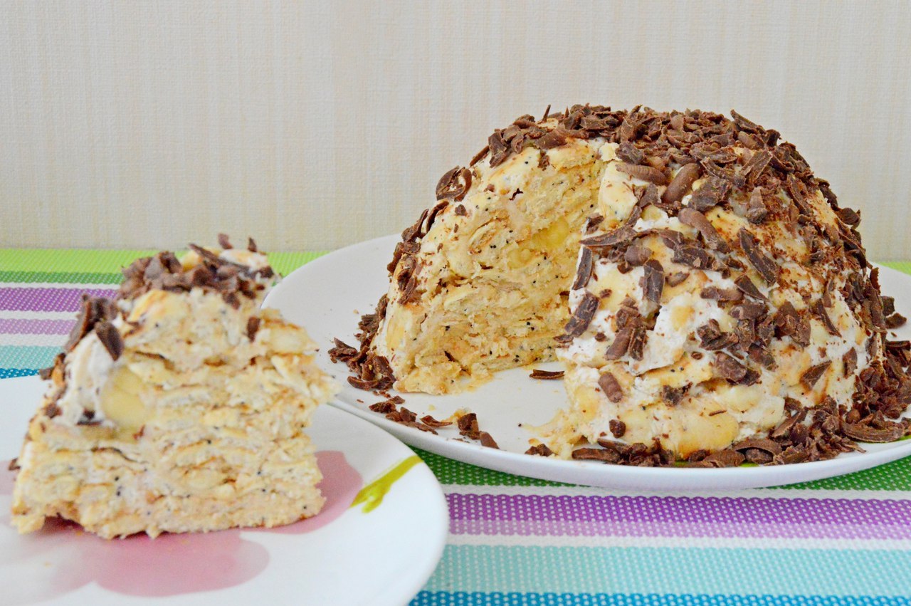 Торт из крекера (печенья) – очень популярный, быстрый, легкий рецепт. Крекер можно заменить нарезанным бисквитом или любым другим печеньем, добавить по желанию фрукты, нарезанное кубиками желе, можно также не смешивать печенье и сметану, а выложить все слоями, убрать шоколад или заменить его джемом, вареньем и т.д., главное фантазия. Для тех у кого пока нет духовки)