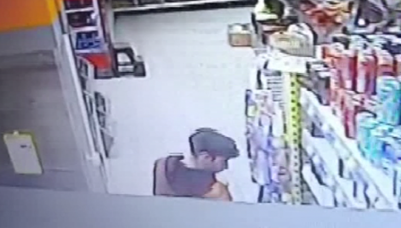 Этот человек может оказаться причастен к краже из сетевой торговой точки. В кадре видно, что гражданин подходит к кассе и общается с сотрудницей. По-видимому, он похитил какой-то товар.