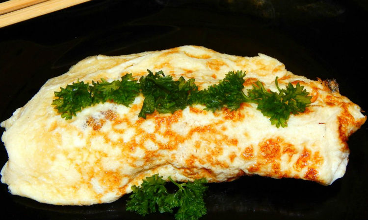 Работать будем над одним из вариантов классического японского омлета омурайсу. Ингредиенты все привычные: 200 граммов риса, луковица, 300 граммов куриного филе, соль, перец, кетчуп, 8 яиц, молоко.