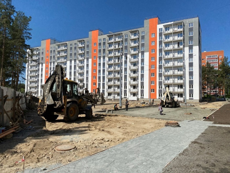 Застройщик должен завершить все работы в сентябре, но он идет с опережением графика. В одной девятиэтажке почти завершены отделочные работы, установлены практически все электрические приборы и сантехника. Во втором доме эти работы выполнены примерно наполовину. Во дворах уже идет благоустройство.